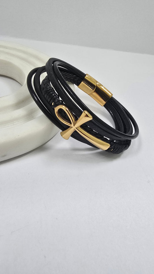 Pulsera Ankh "Eternidad" en Cuero y Oro