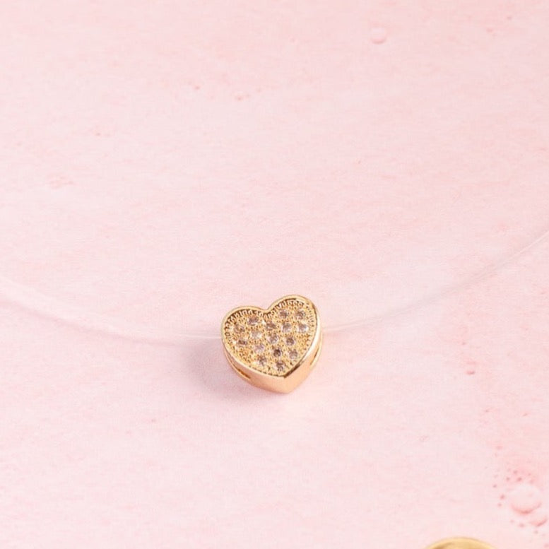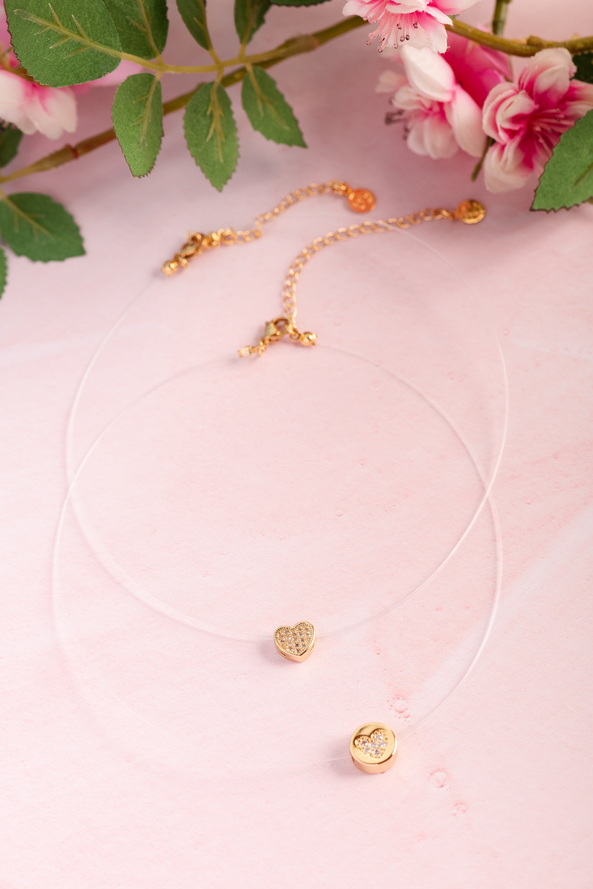Collar invisible con dije de corazón en baño de oro, perfectos para complementar con otros accesorios.
