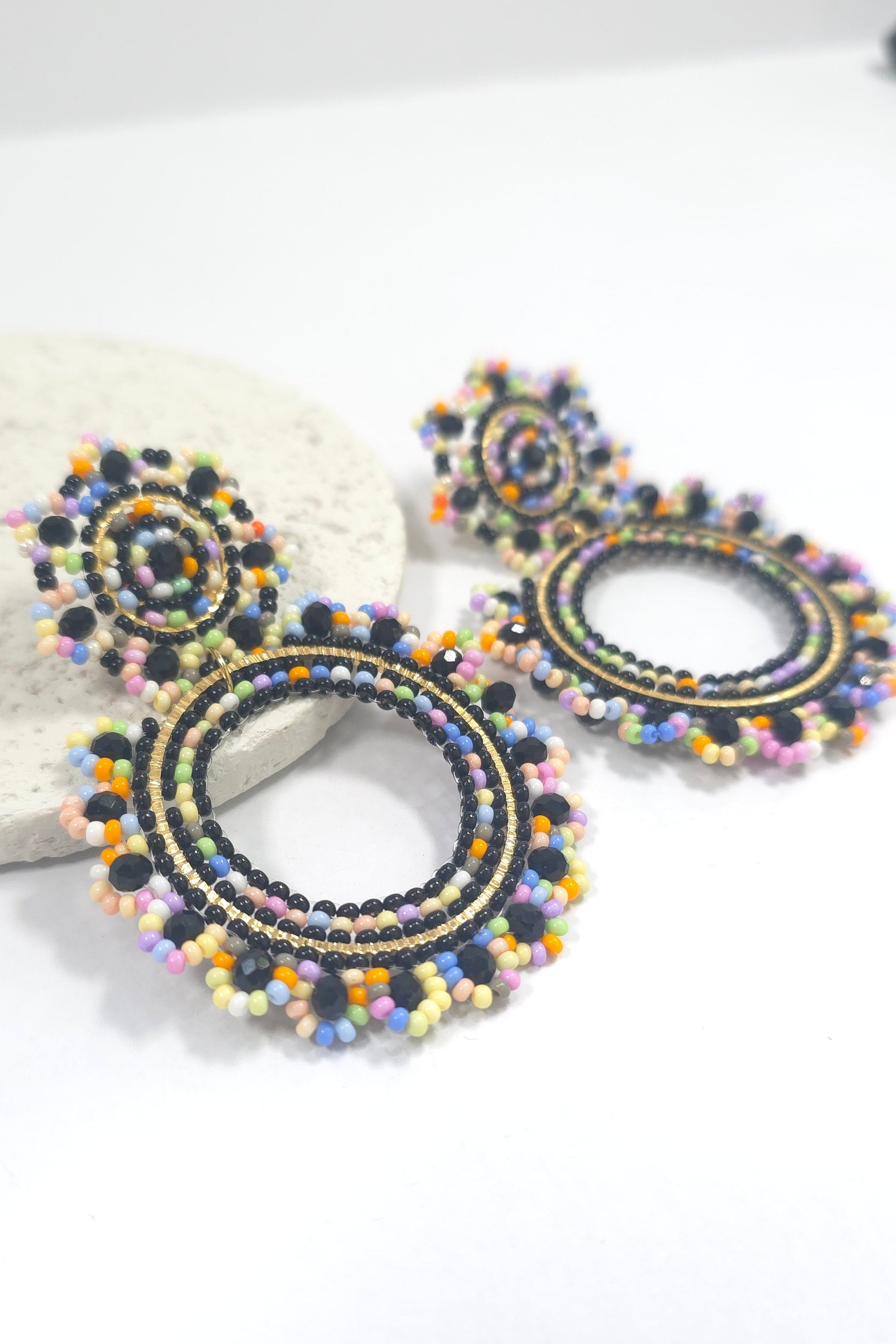 ARETES TEJIDOS A MANO CON ABALORIOS Y BAÑO DE ORO 18K
