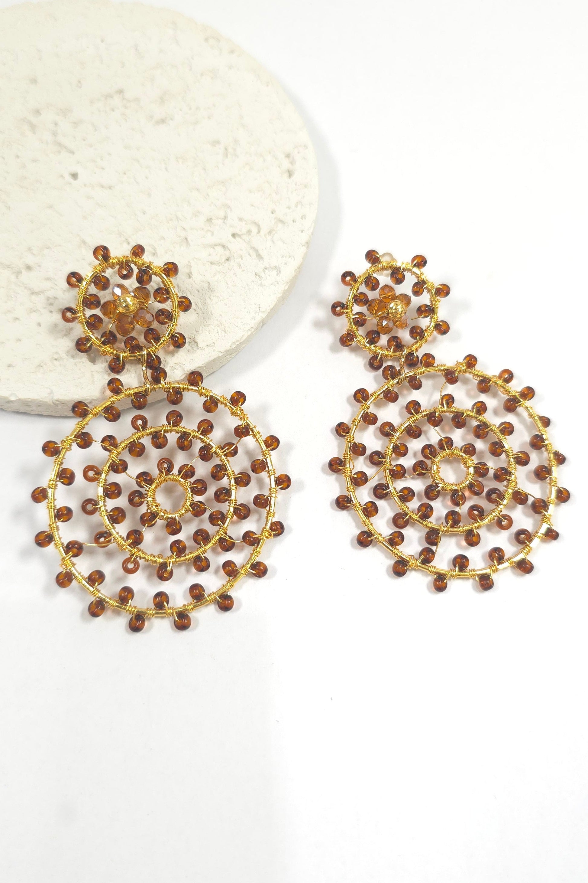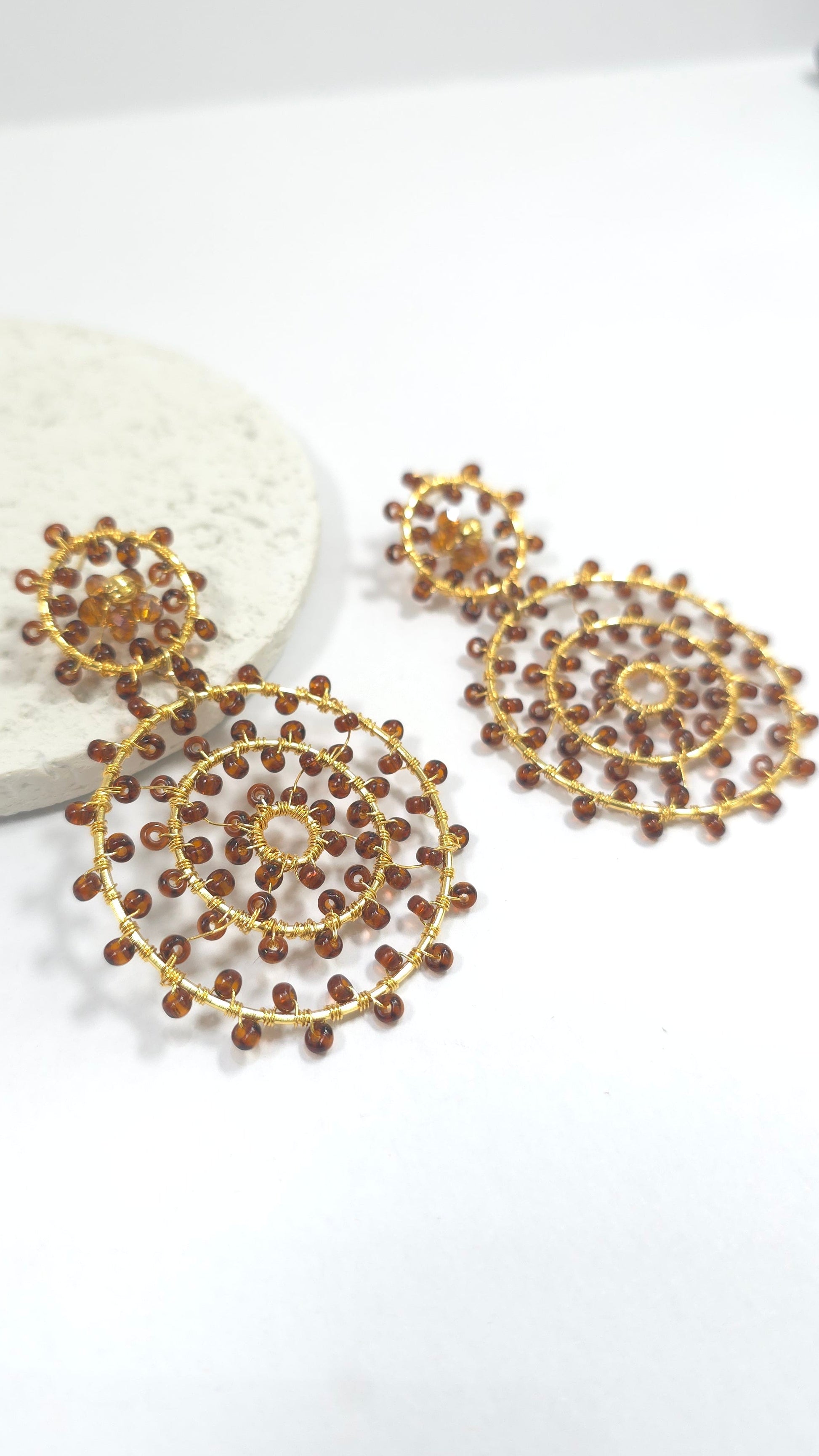 ARETES TEJIDOS A MANO CON ABALORIOS Y BAÑO DE ORO 18K