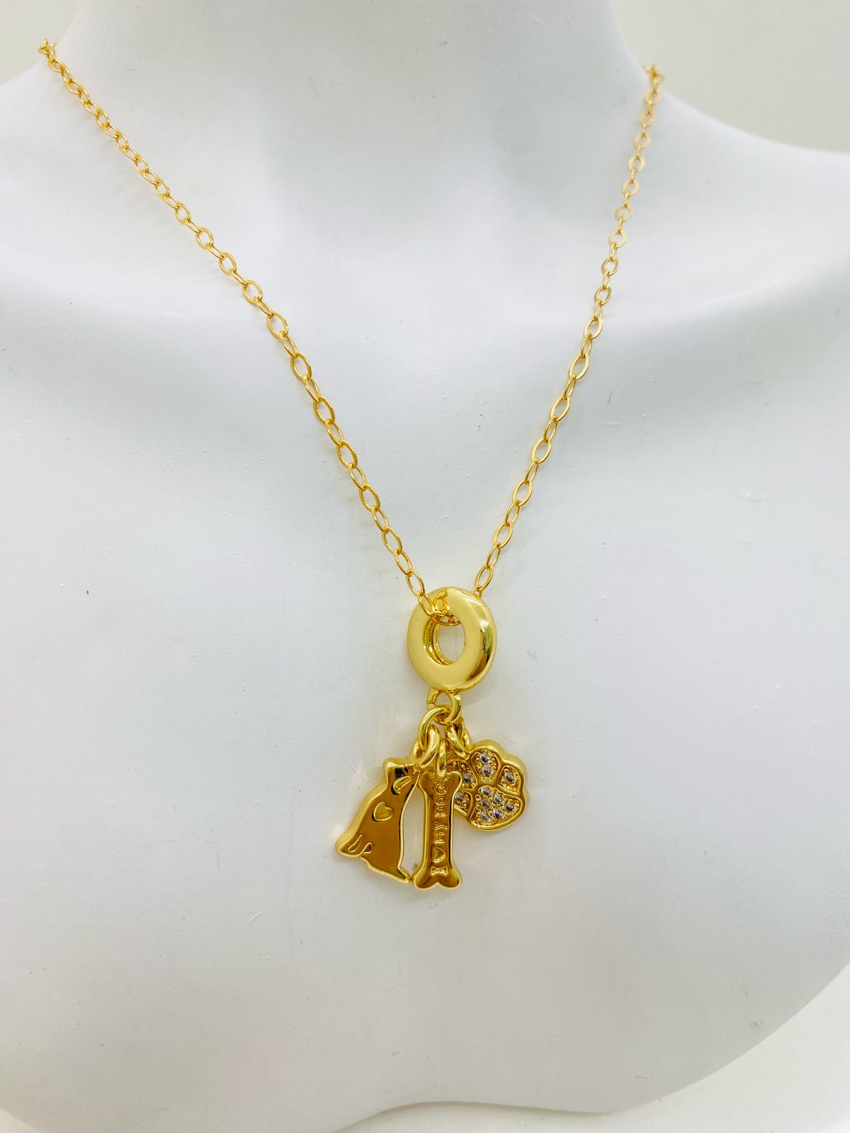 Collar Dije Perro, Hueso y Pata de Perro de Toque Celestial es la pieza perfecta para las amantes de los perros que desean llevar su amor por sus mascotas.