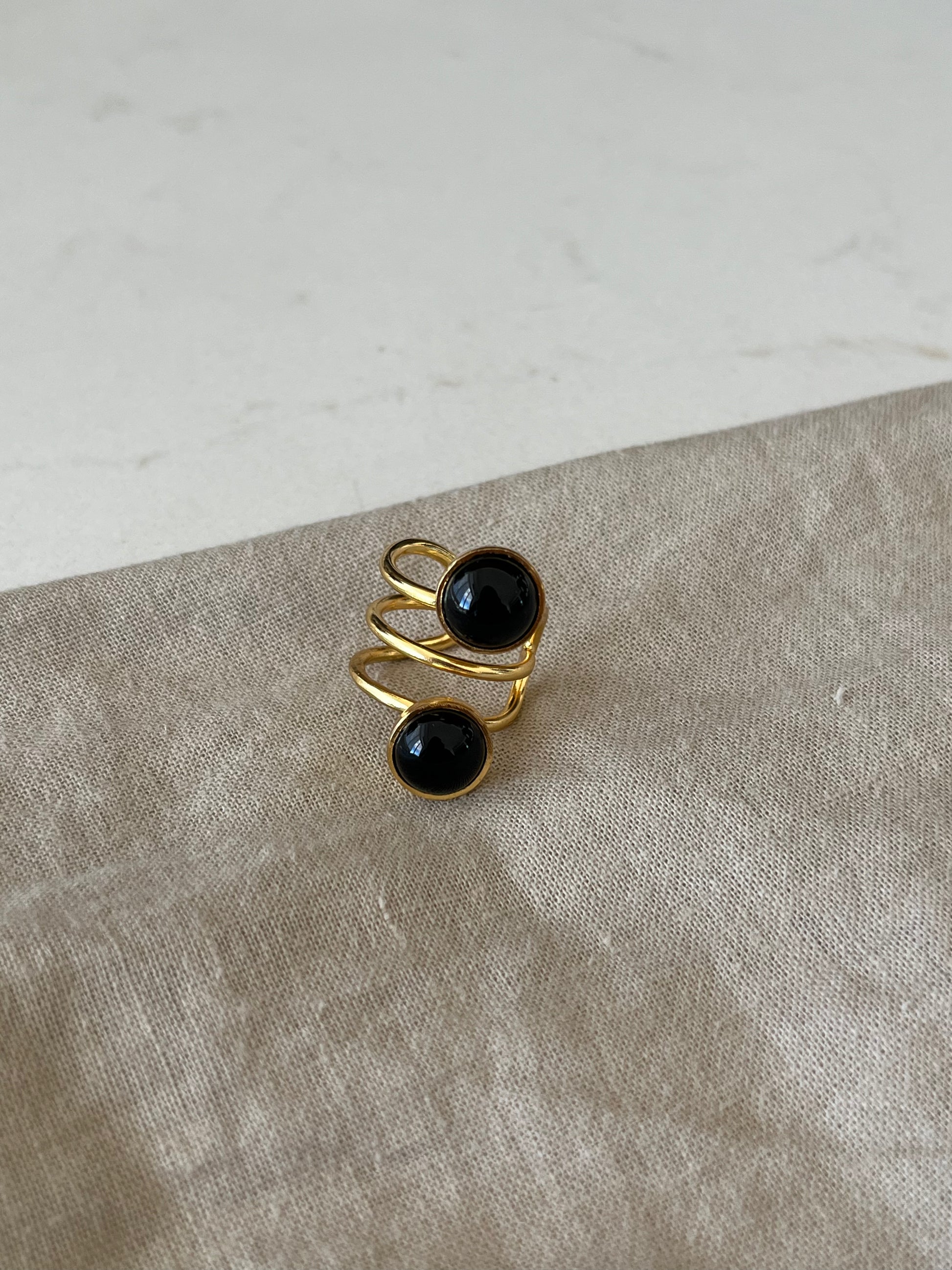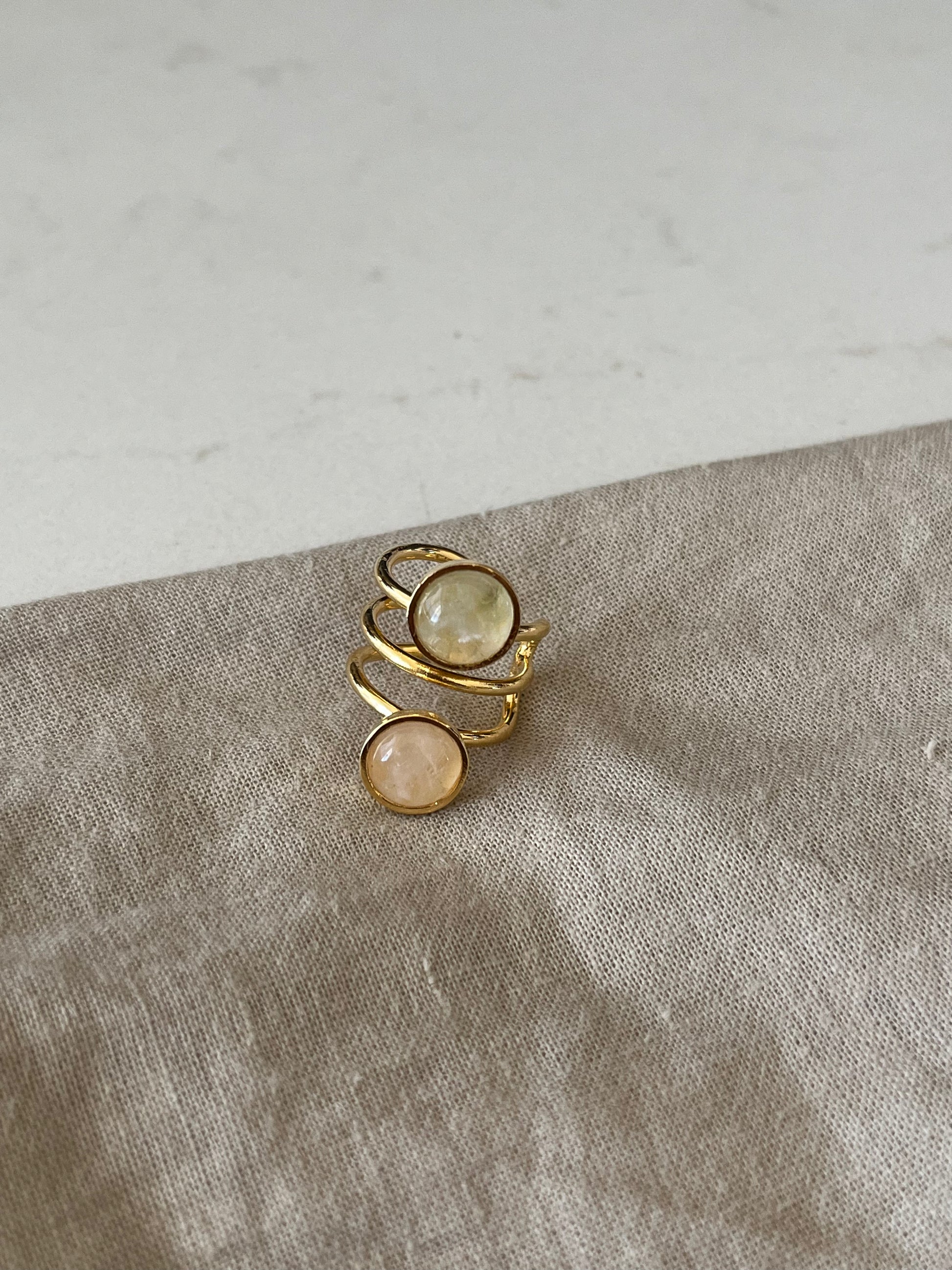 Earcuff Doble con Cuarzo y Detalles en Baño de Oro 24K – Diseño Elegante