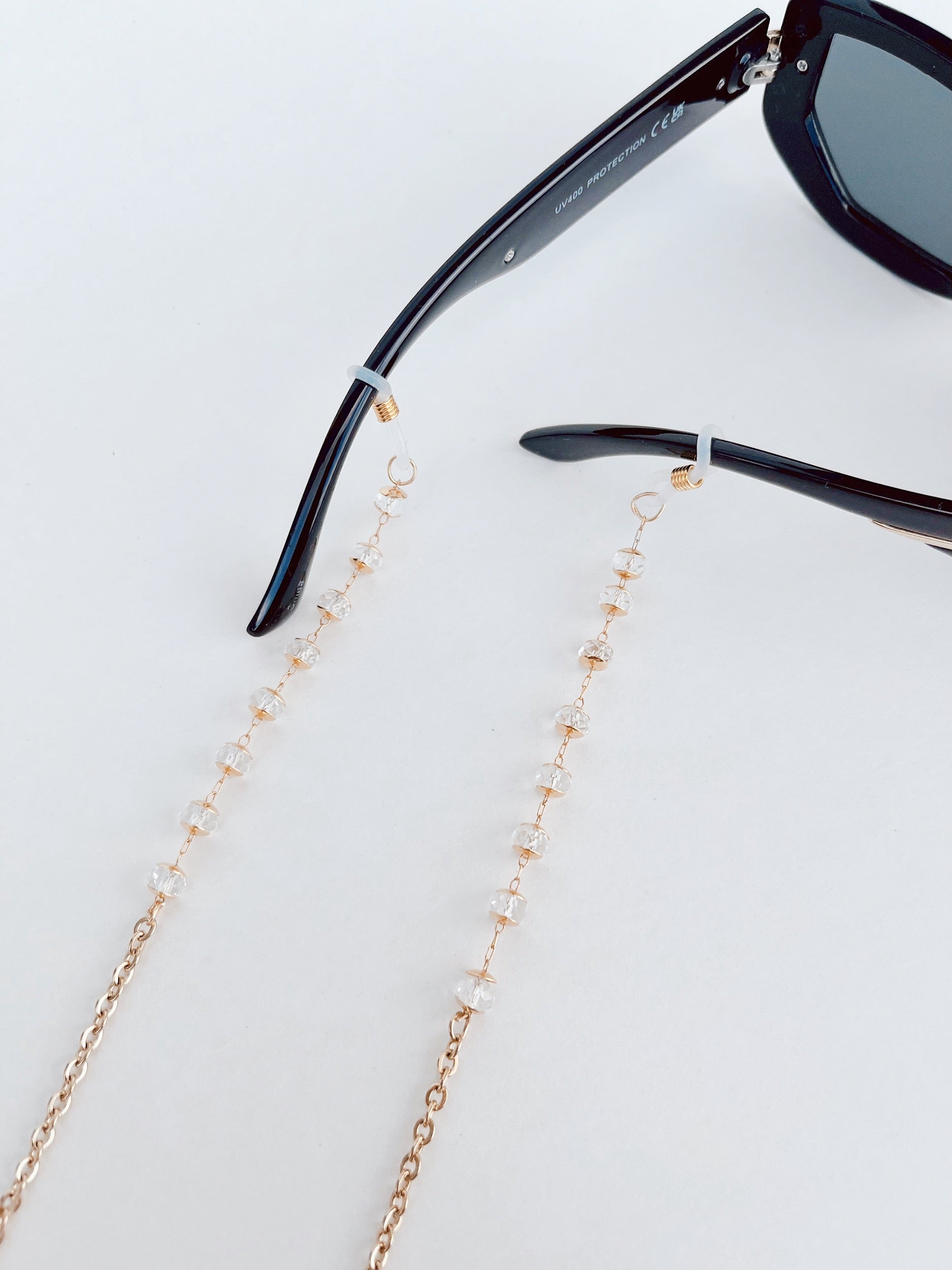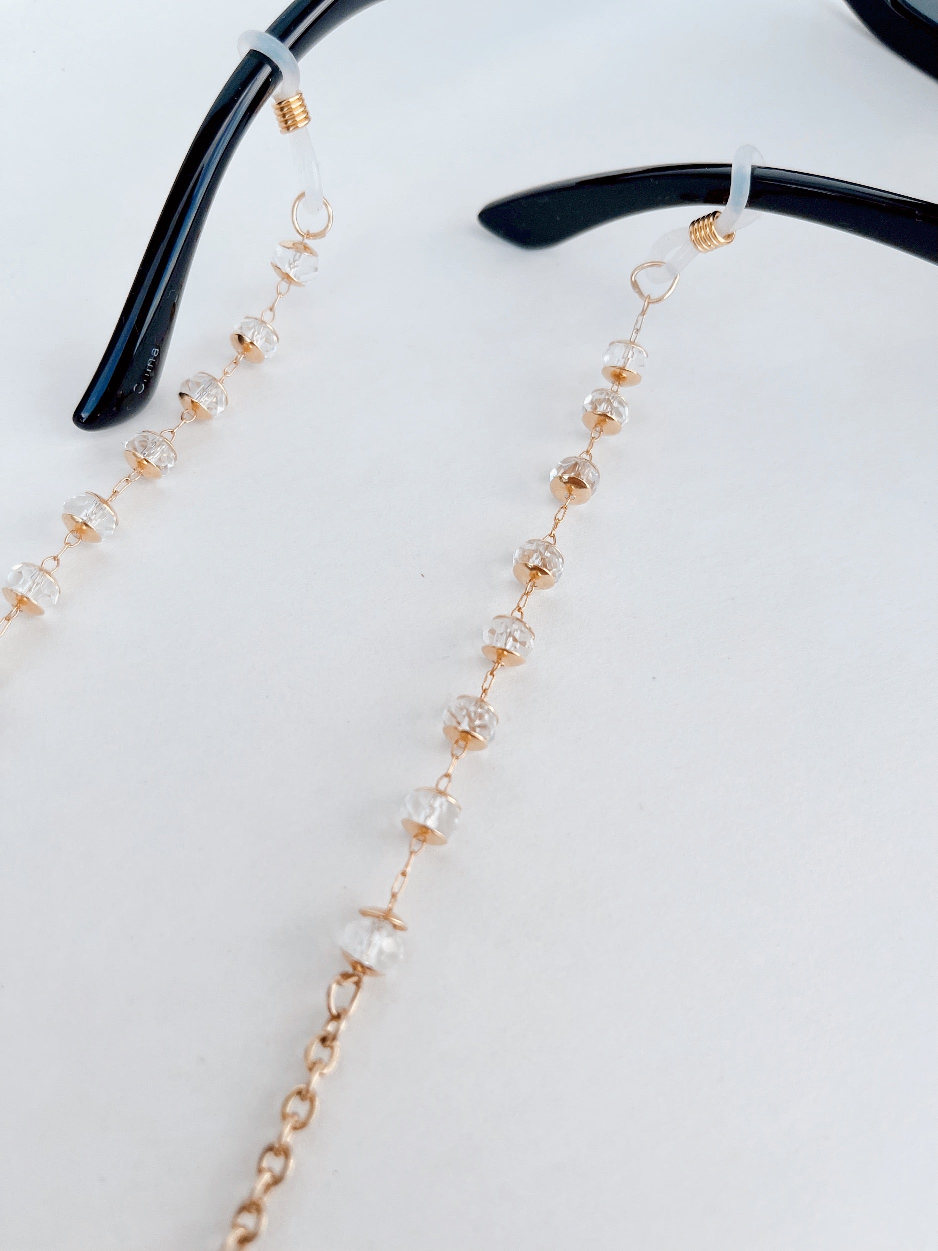 Cadena de lentes hecha a mano con diferentes abalorios y detalles en baño de oro.
