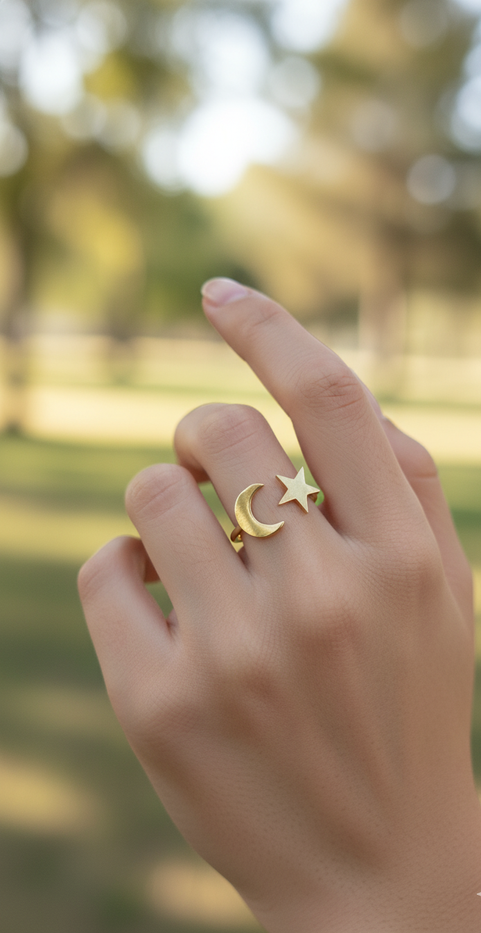 Presentamos el Anillo "Estrella y Luna Creciente", una pieza delicada y con significado, perfecta para llevar un toque de encanto celestial a tu día a día.