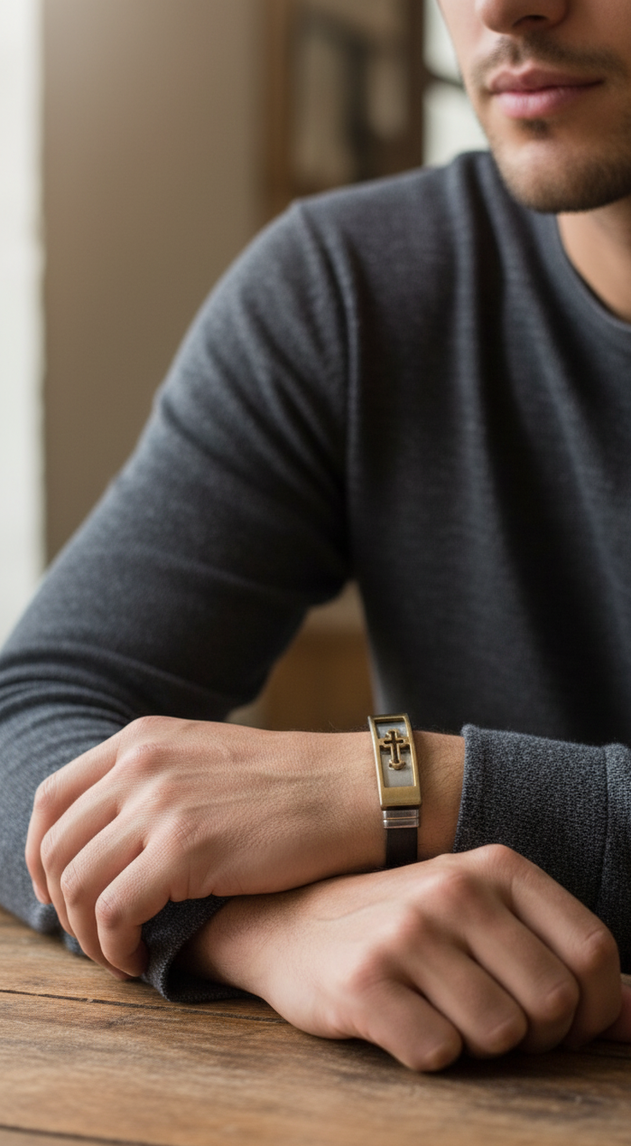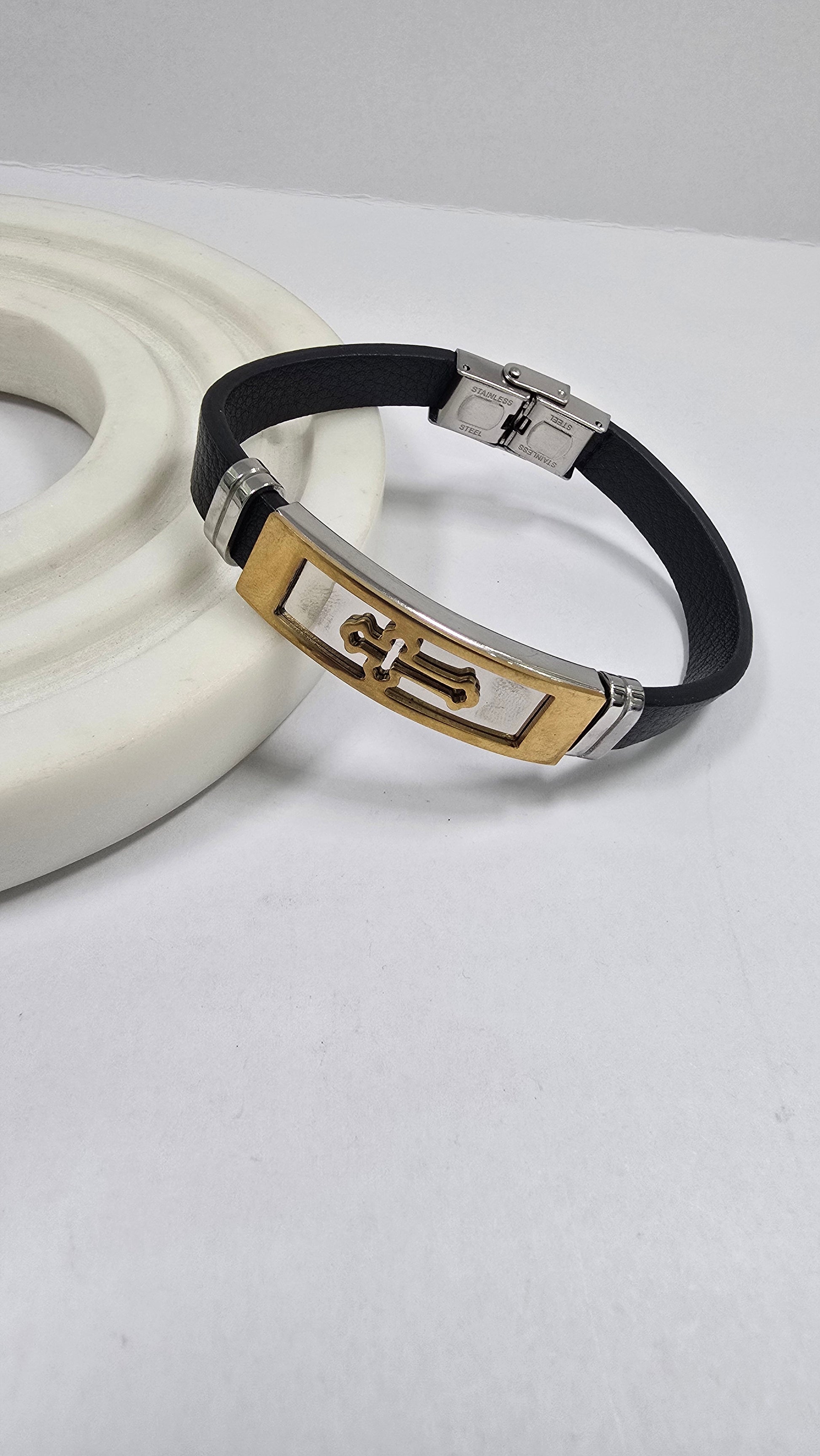 Estilo con Significado. Esta elegante pulsera combina la resistencia moderna del acero inoxidable con el tacto clásico y cómodo de la piel negra de alta calidad. En su centro, destaca una placa bitono con un diseño de cruz calada en relieve, que ofrece un poderoso símbolo de fe y audacia. El broche de seguridad garantiza un ajuste perfecto y duradero. Ideal para el hombre contemporáneo que busca un accesorio distintivo que refleje su fuerza y personalidad.