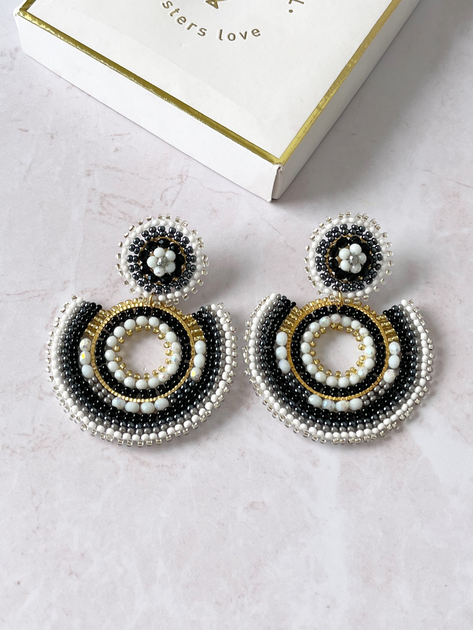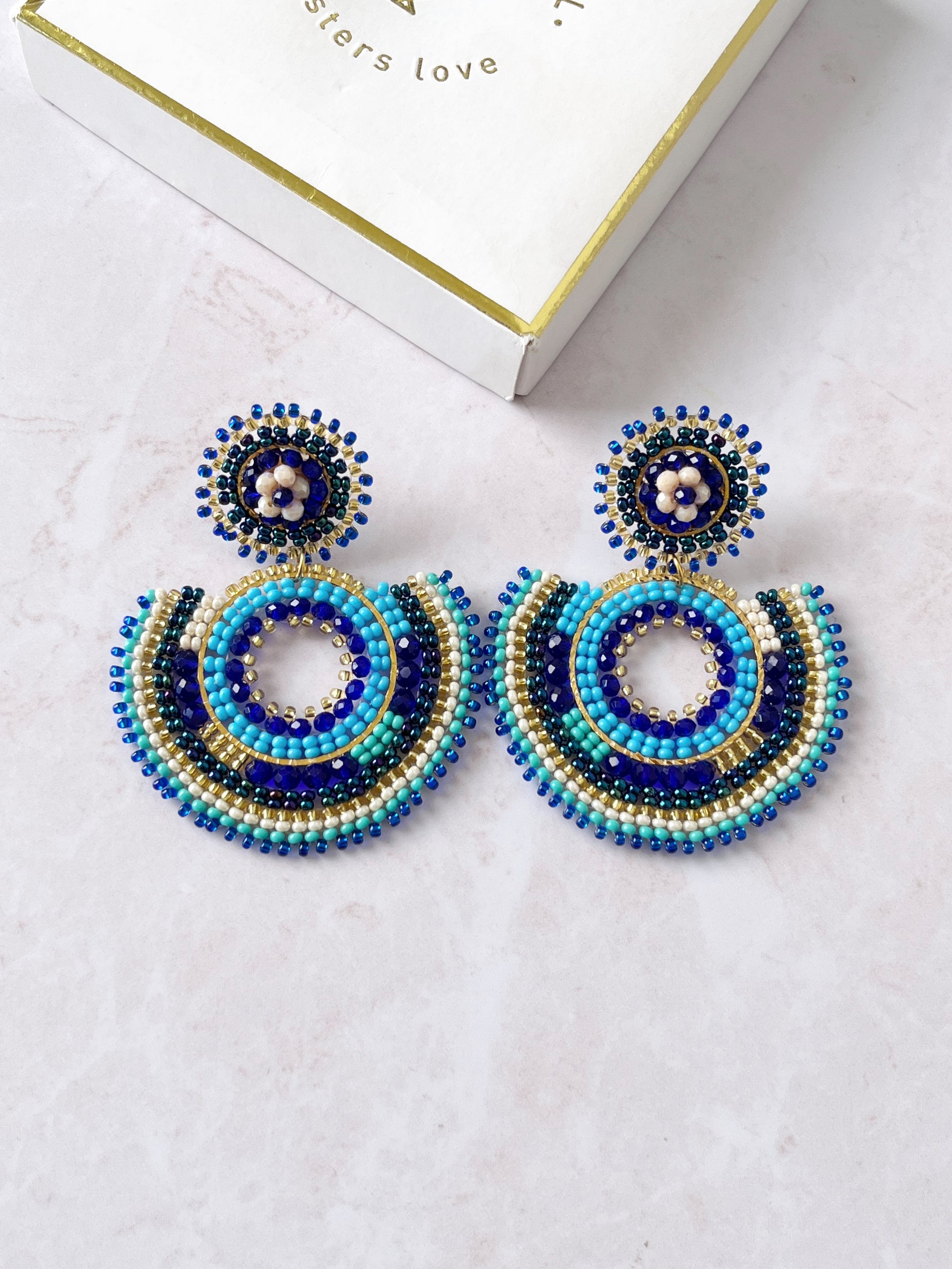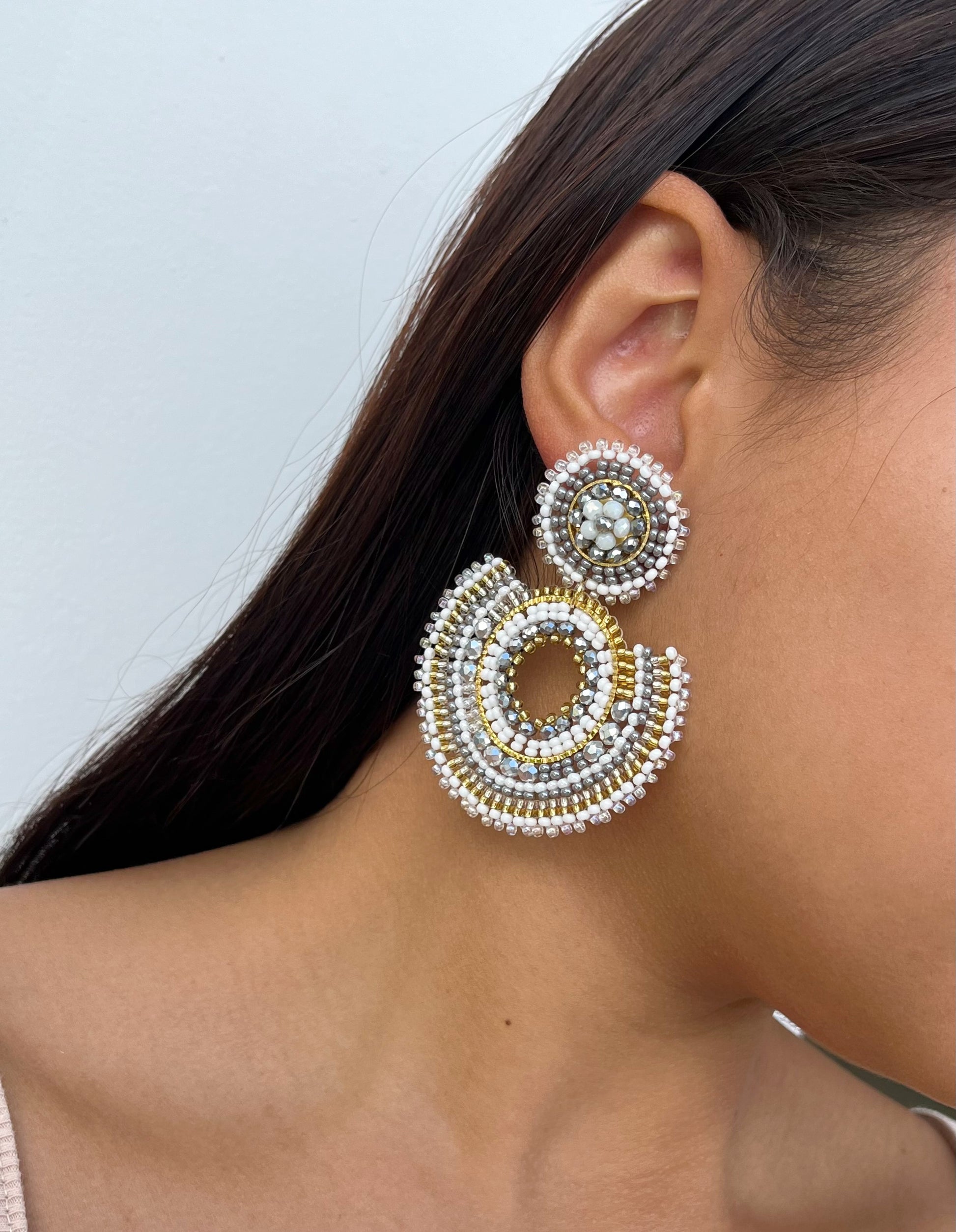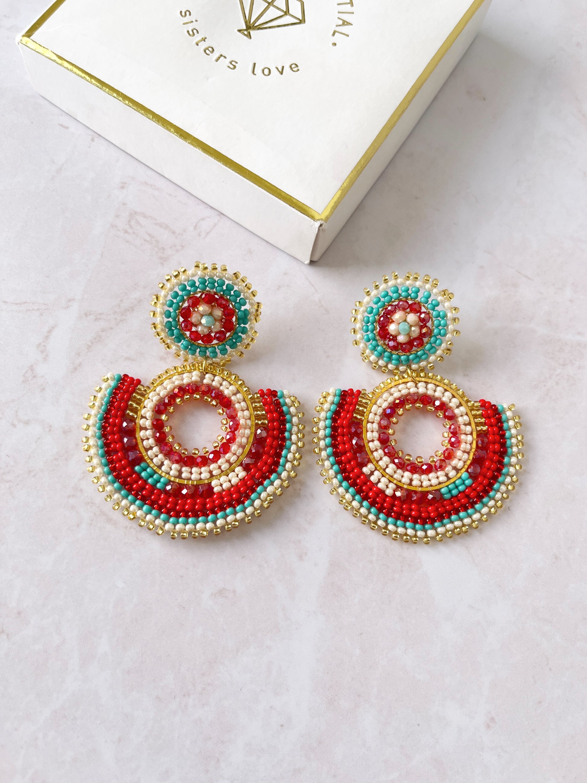 Hermosos y delicados aretes tejidos a mano con diferentes tonos de abalorios