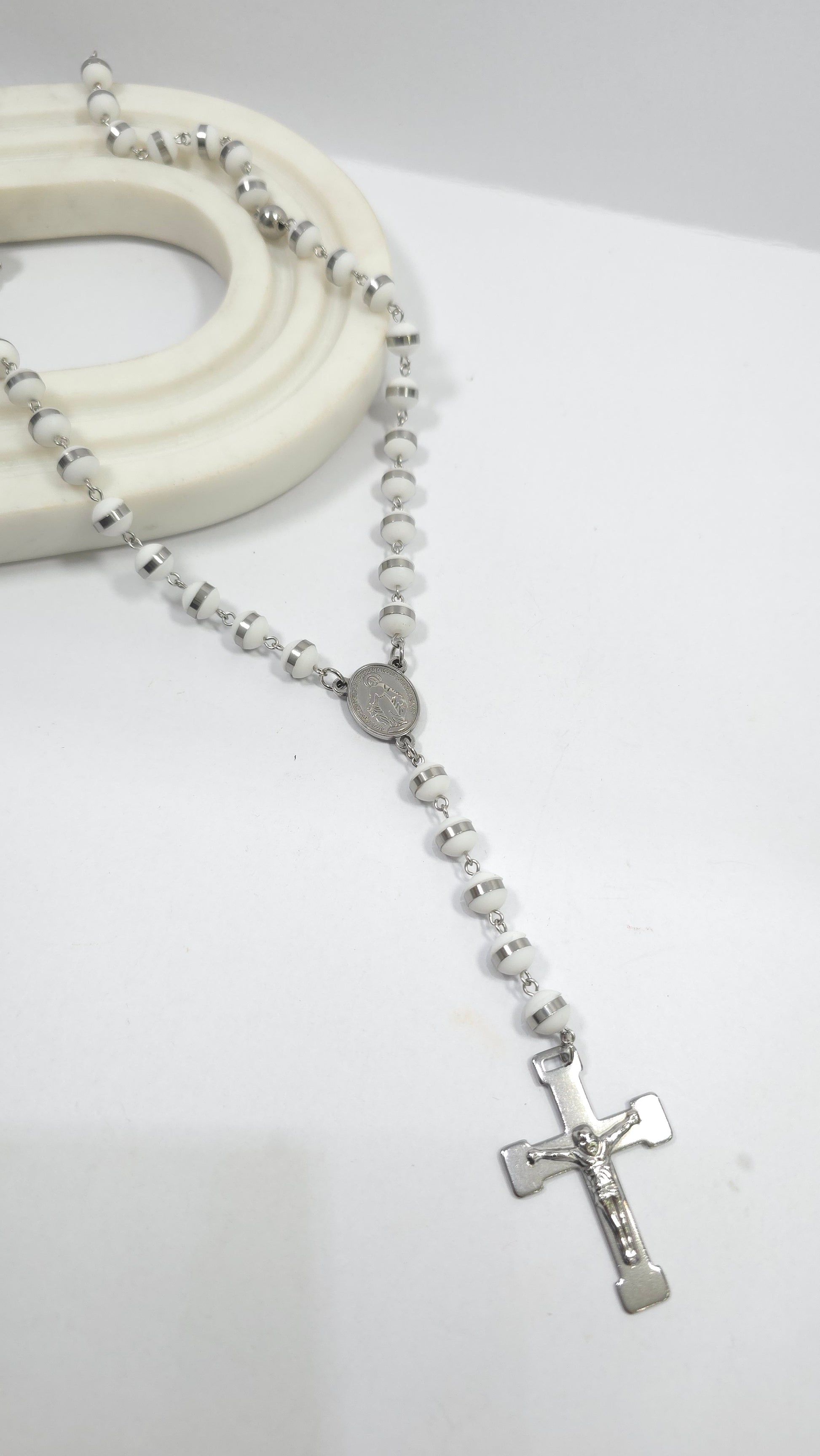 Rosario de Devoción "Luz Divina" - Cuentas Blancas y Acero